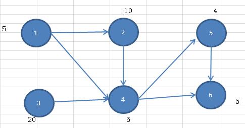 在一个地图上有n个地窖(n<=200),每个地窖中埋有一定数量的地雷。同时,给出地窖之间的连接路径,并规定路径都是单向的,且保证都是小序号地窖指向大序号地窖,也不存在可以从一个地窖出发经过若干地窖后又回到原来地窖的路径。某人可以从任一处开始挖地雷,然后沿着指出的连接往下挖(仅能选择一条路径),当无连接时挖地雷工作结束。设计一个挖地雷的方案,使他能挖到最多的地雷。