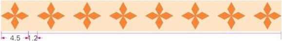 如,图中的案例花的宽度为 4.5cm ,花之间的间隔为1.2cm ,那么一条长为 0.62m 的彩纸最多可以做 11 朵花的花边(因为一朵花加一个间隔是 5.7cm , 10 朵花以及间隔共 57cm,剩余 5cm 还可以再做一朵花,因此最多共可以做 11 朵花)(5.1.81)。