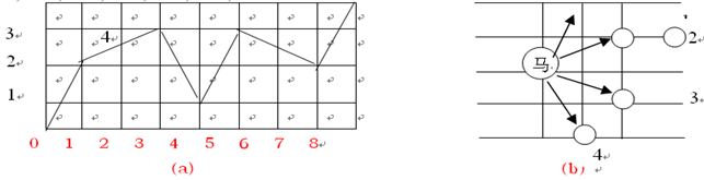 中国象棋半张棋盘如图(a)所示。马自左下角往右上角跳。