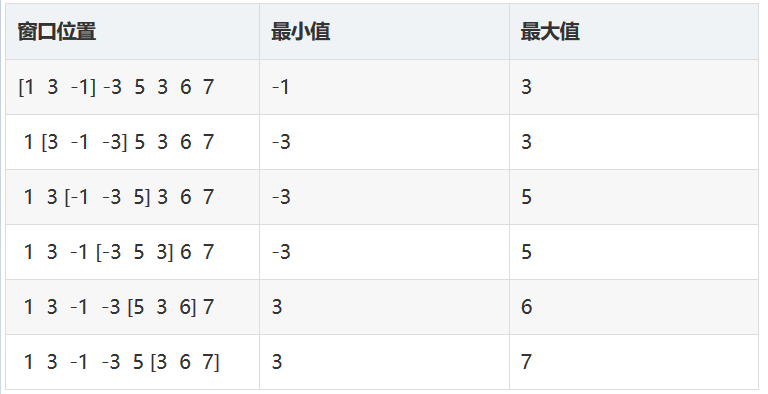 数组是 [1 3 -1 -3 5 3 6 7], k = 3。