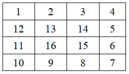 一个 n 行 n 列的螺旋矩阵可由如下方法生成: