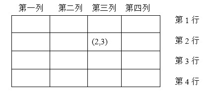 (2,1) (2,2) (2,3) (2,4)                     {同一行上格子的位置}