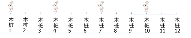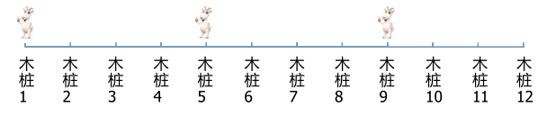 样例 1:12 根木桩,6 只羊,相邻 2 只羊的距离至少为 4 米。达不到这样的距离要求,按此要求最多只能拴3 只羊。