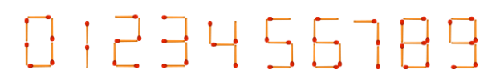 输出若干行,每行一个数字。列出从0到111中,恰好使用6根火柴棒可以摆出的所有数字。