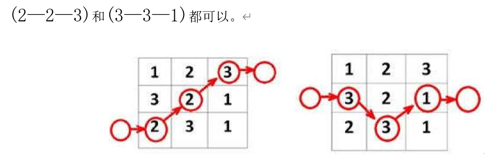 现在,小明从这个矩阵的左边出发,目的地是这个矩阵的右边。