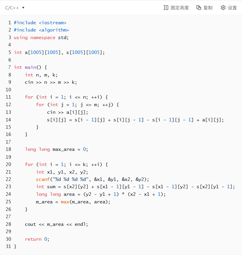 程序输出的 m_area 是所有查询子矩阵的( )。