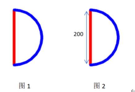 蓝色部分为直径为200的半圆,并且在红色线条的右侧;