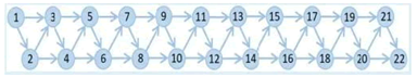 每名小朋友只能按照图中箭头指向的方向移动。给出两名小朋友的编号 N 和 M(1≤ N < M ≤ 50),请你找出从编号 N 到编号 M 共有多少条不同的路线。