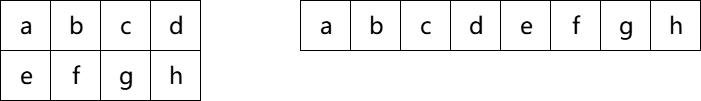 例如: S = "abcdefgh"。按要求 m ≥n 有如下两种矩阵: