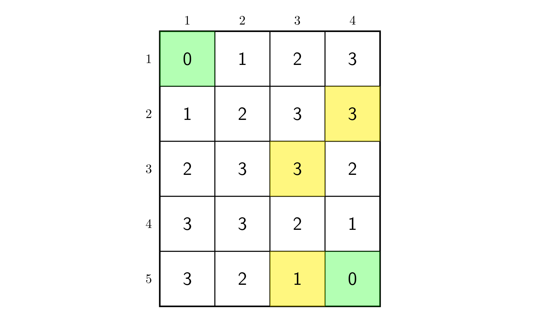 军团是一个 n 行 m 列的矩阵,每个单元是一个血色先锋军的成员。感染瘟疫的人,每过一个小时,就会向四周扩散瘟疫,直到所有人全部感染上瘟疫。你已经掌握了感染源的位置,任务是算出血色先锋军的领主们感染瘟疫的时间,并且将它报告给巫妖王,以便对血色先锋军进行一轮有针对性的围剿。