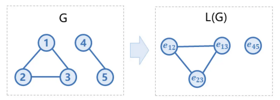 对于无向图 G 中的一条边,在线图 L(G) 中加入与之对应的一个结点。