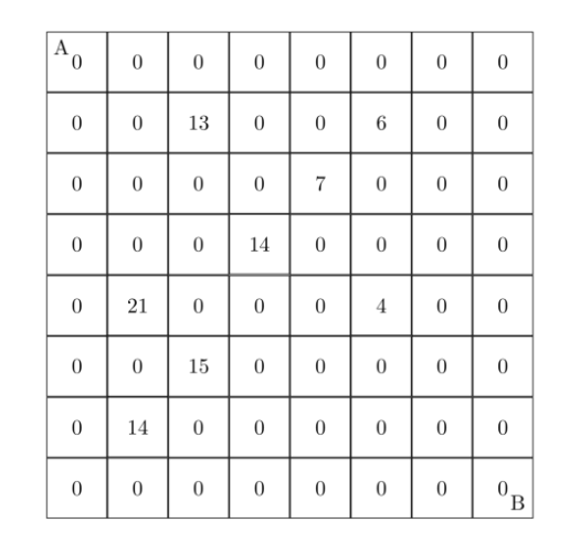 此人从 A 点到 B 点共走了两次,试找出两条这样的路径,使得取得的数字和为最大。