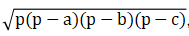 一个三角形的三边长分别是a、b、c,那么它的面积为: 其中p= 1/2*(a+b+c)。输入这三个数字,计算三角形的面积,四舍五入精确到1位小数。